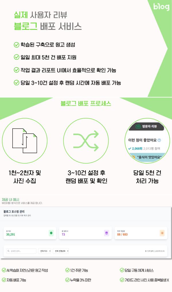 저희 블로그 배포 시스템은 자동화된 체계와 차별화된 품질 관리로 빠르고 안정적인 블로그 확산 효과를 제공합니다.